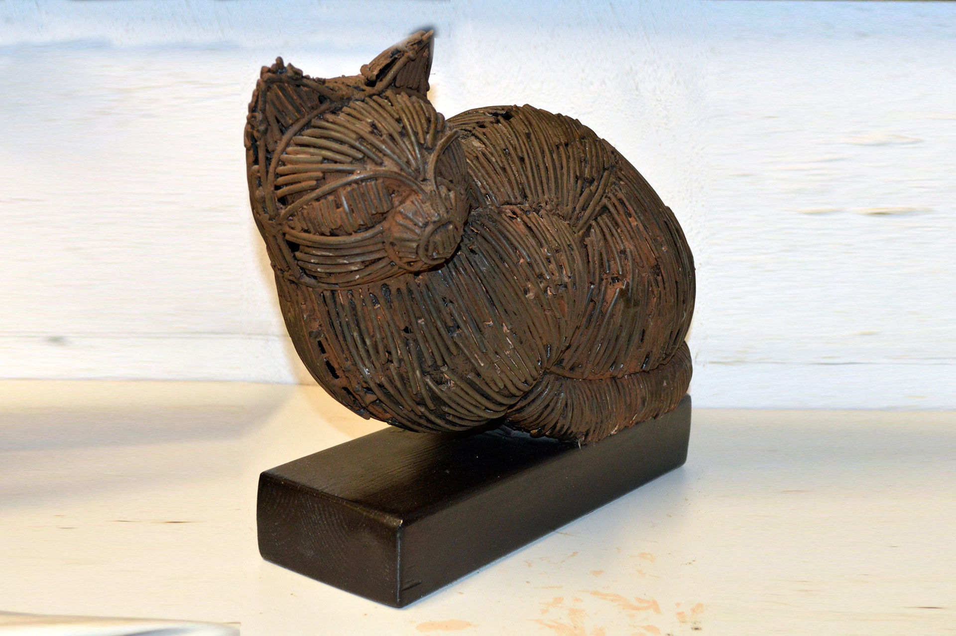 El hierro es un material muy versátil que se ha utilizado en la escultura moderna para crear obras con un gran impacto visual, debido a su resistencia, flexibilidad y versatilidad. El hierro puede ser moldeado y forjado para producir curvas y formas suaves o para crear figuras abstractas con una mayor expresividad. También permite agregar detalles como texturas, patinas, color y luces. Esto le da a la pieza una sensación de profundidad y expresividad que es única.